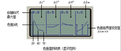 可一目了然地判別出所測顏色是否在規定范圍內。可簡單有效地實施質量檢查。